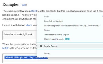 Aby użyć Base64 Decoder, po prostu zaznacz ciąg Base64, który chcesz zdekodować, kliknij go prawym przyciskiem myszy i wybierz "Base64 Decode" z menu kontekstowego. Rozszerzenie natychmiast zdekoduje ciąg i wyświetli oryginalne dane.